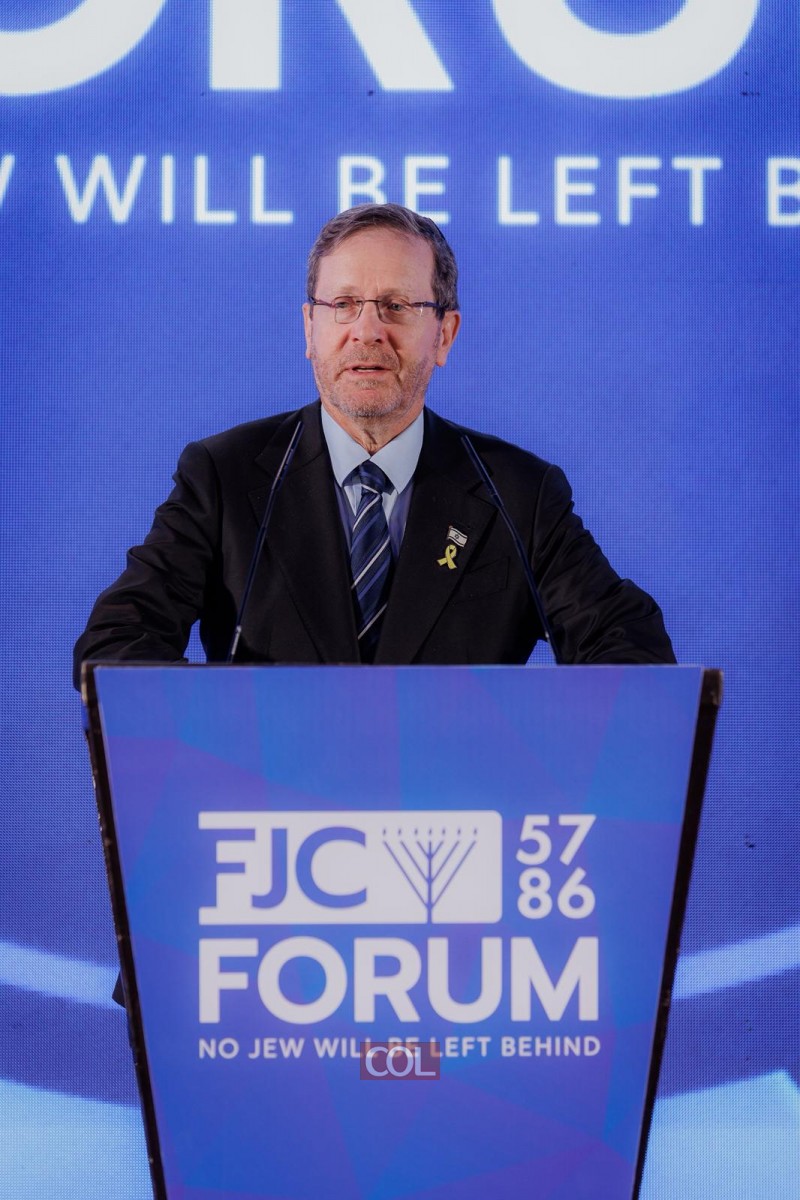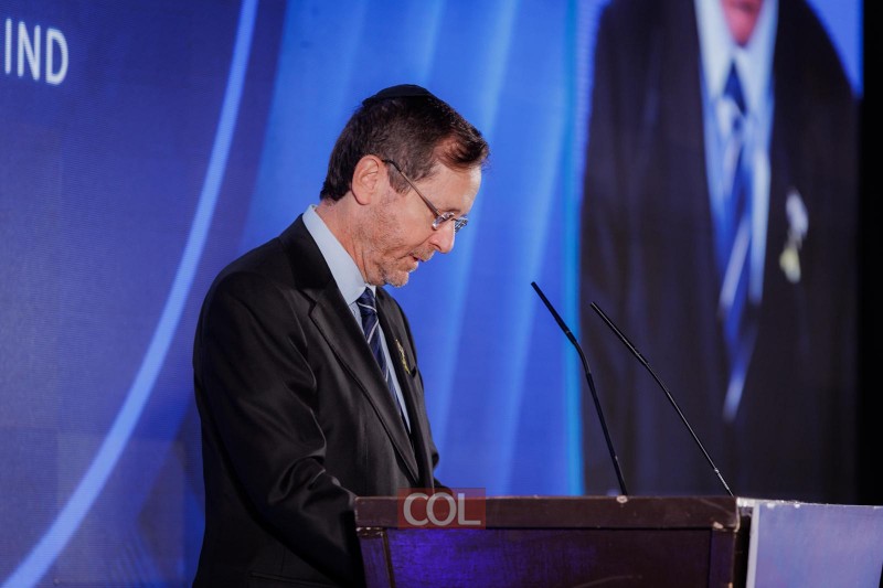 בסיום, הוזמן הנשיא לבמה לקול תשואות, כשהקהל עומד על רגליו. בנאומו, שנמשך כ-10 דקות, קשר הרצוג בין עבר להווה בצורה מרגשת. "בימים אלה מלאו יובל שנים ליום שבו סבי, נשיא המדינה חיים הרצוג, קרע מעל בימת האו"ם את ההחלטה שקבעה ש'ציונות היא גזענות'. בכל דור ודור קמים עלינו לכלותנו", אמר, והזכיר את המאבקים ההיסטוריים נגד אנטישמיות.