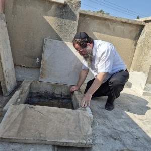 לקראת הגשמים בסוף השבוע: רבו של כפר חב"ד וחבר בי"ד רבני חב"ד הרב מאיר אשכנזי שליט"א בבדיקת בור מי הגשמים, בבית הכנסת נחום יצחק שבשיכונים