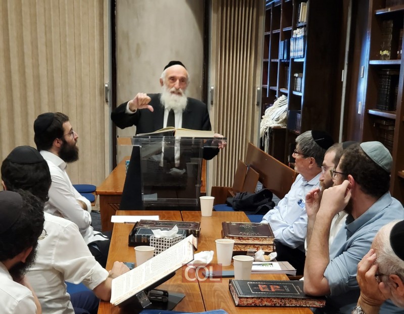 ראש כולל 'צמח צדק' בירושלים העתיקה - הרב יוסף צבי סגל, במסירת שיעור תורה בבית הכנסת הגדול שב׳באל הרבור' אשר נוסד ע"י הרב שלום-בער ליפסקר ז"ל