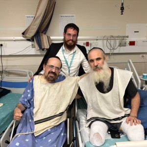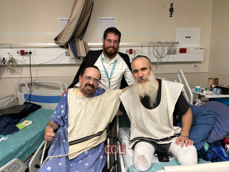 הרב לירז זעירא משלוחי הרבי בקמפוסים שרגליו נכרתו לאור פציעה קשה במסגרת פעילות צה"לית בסוריה והרב מענדי ליכטשיין מחב"ד ז'יטומיר אוקראינה שרגלו נכרתה לאחרונה, פצחו בריקוד חסידי יחד עם שליח הרבי הרב מענדי בקרמן בבית הרפואה 'אסף הרופא - שמיר', לצלילי מנגינת הבאנקעט של כינוס השלוחים העולמי בניו-יורק