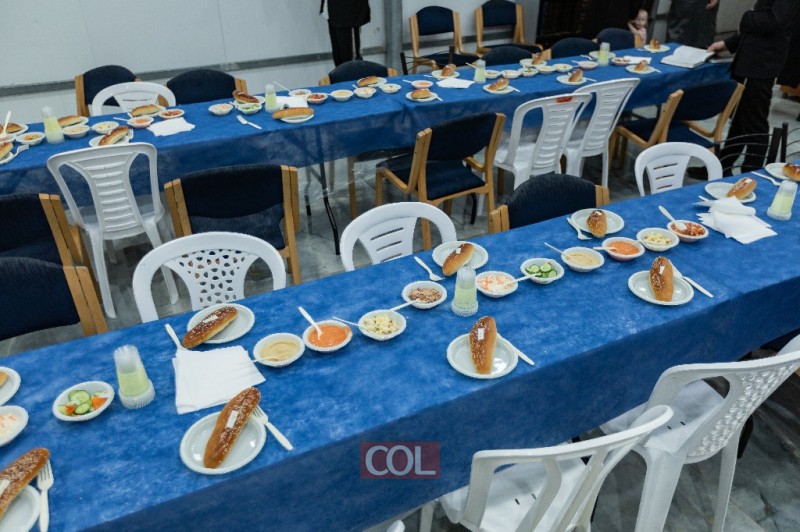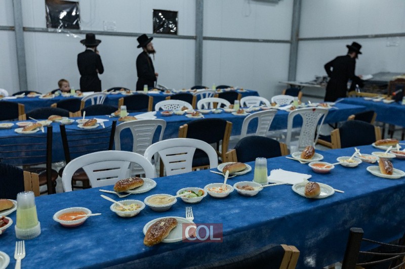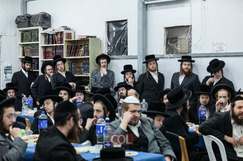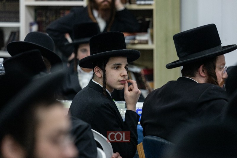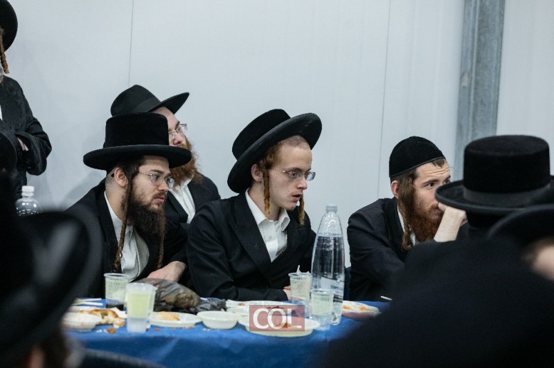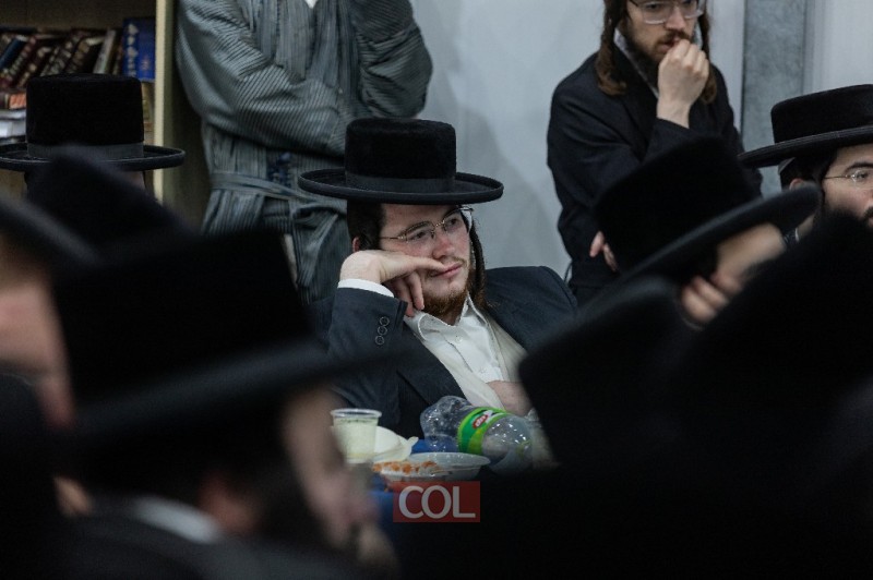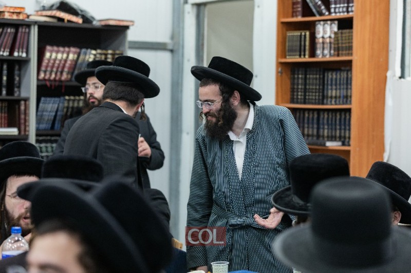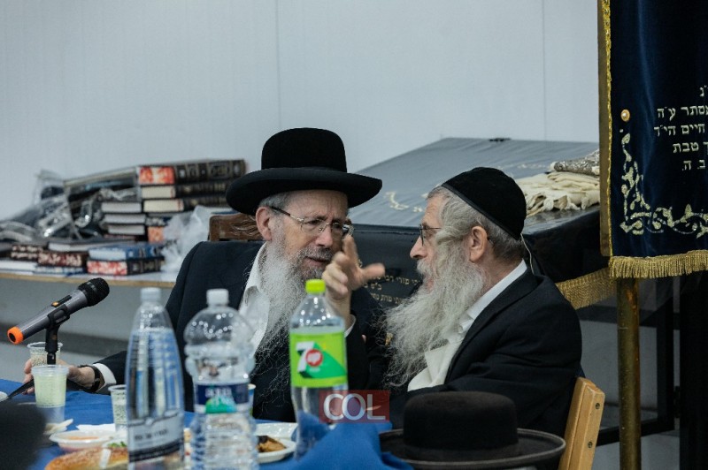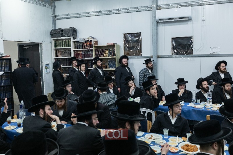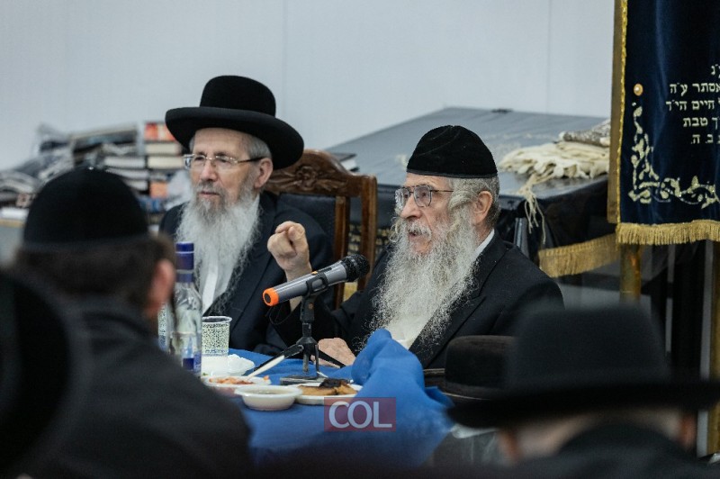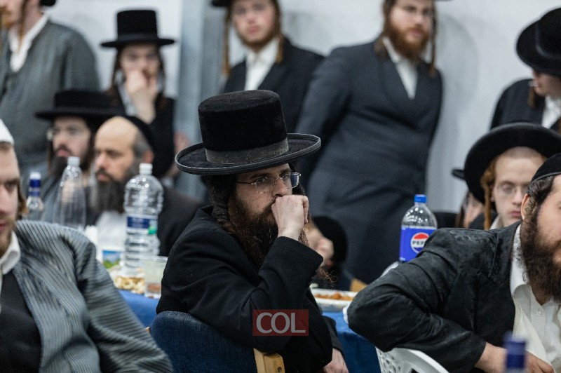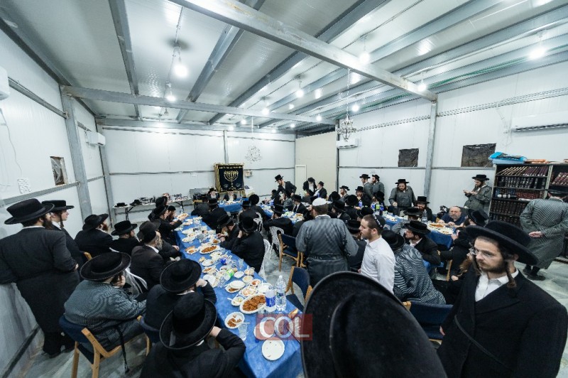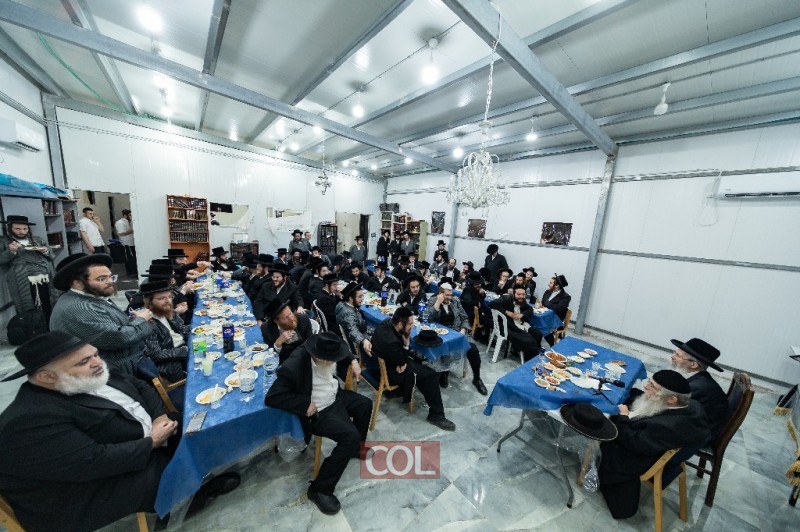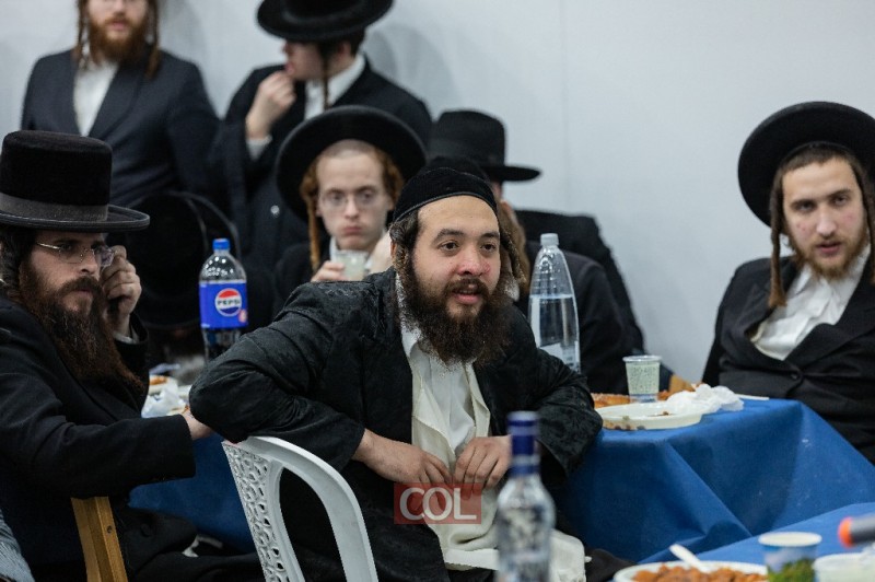 ההתוועדות נערכה בבית כנסת לעלוב סביב שולחנות ערוכים בכל טוב, ומעל מאה איש השתתפו בה.