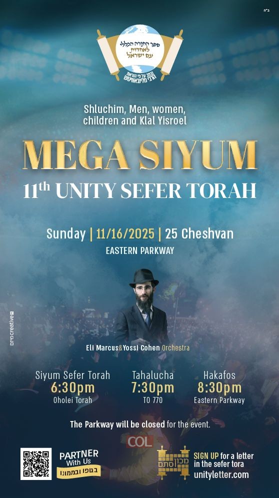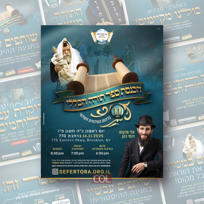 בשעות אלו נערכות ההכנות האחרונות לקראת האירוע הגדול והמיוחד של הכנסת ספר התורה הכללי ה-11. החגיגה המיוחדת תתקיים כחלק מאירוע כינוס השלוחים העולמי. בתום הבנאקט המסורתי, כלל השלוחים