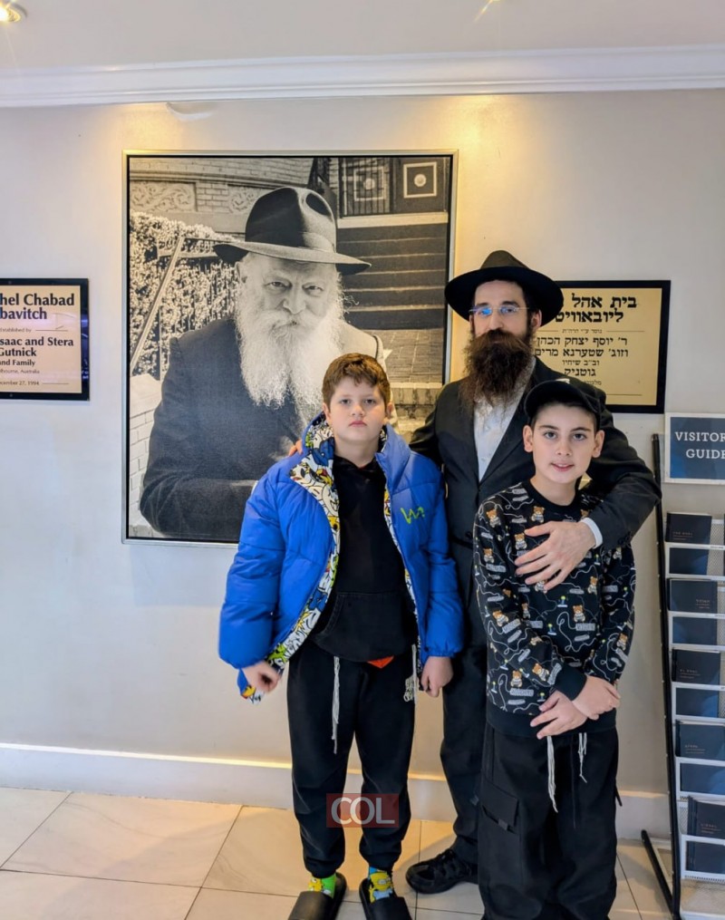 רב בית הספר מיר אינטלקט במוסקבה - הרב דוד אוסאדצ’י, מלווה שני תלמידים שזכו בפרס מיוחד מטעם ״קרן 770״, לביקור ותפילה אצל הרבי
