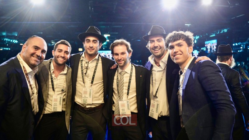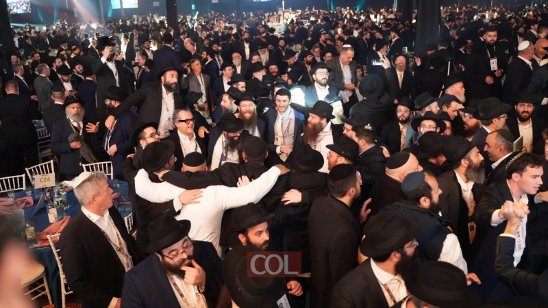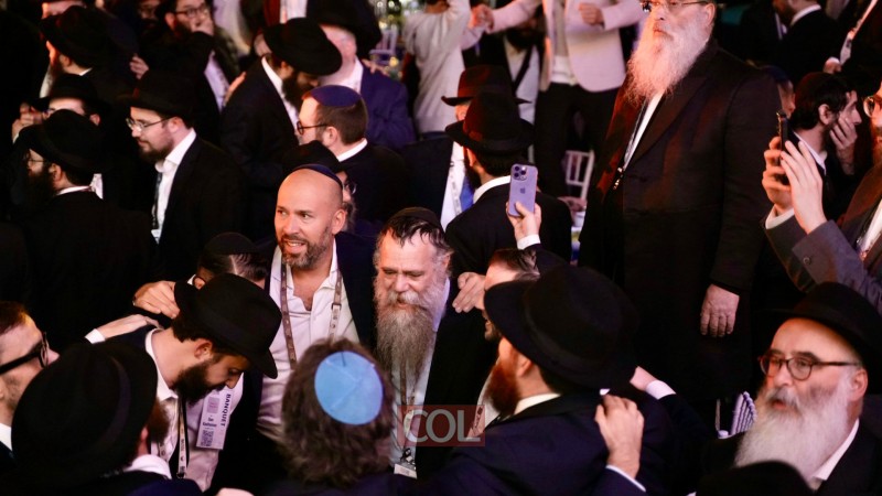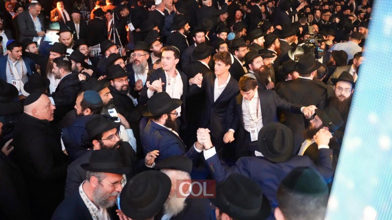 יד אל יד, כתף אל כתף: לאורך השנה כולה, תומכי השלוחים הם ה'מנוע' שנותן את הכוח והשותפות לפעילות של השלוחים, והריקוד החסידי הסוער שחתם את הבאנקעט, שלוחים ותומכיהם שלובי זרוע, שיקף זאת יותר מכל | צלם COL שניאור שיף הסתובב בין הרוקדים ומגיש תיעוד מיוחד נוסף