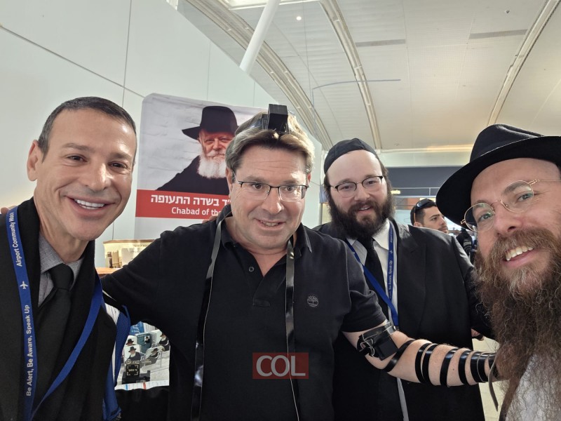 אחרי שהשתתף ב'באנקעט' של שלוחי חב"ד: הקונסול הכללי של ישראל בניו יורק - אופיר אקוניס, הניח תפילין בדוכן חב"ד בשדה התעופה JFK, בדרכו לארה"ק, ללוות את ראש העיר ניו יורק היוצא - אריק אדמס בביקורו בישראל
