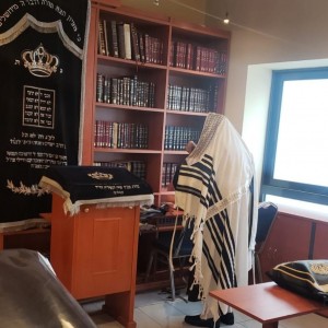 האדמו"ר מהר"א מסאטמר, העושה דרכו לארץ הקודש, בתפילת שחרית בבית חב"ד ביוון