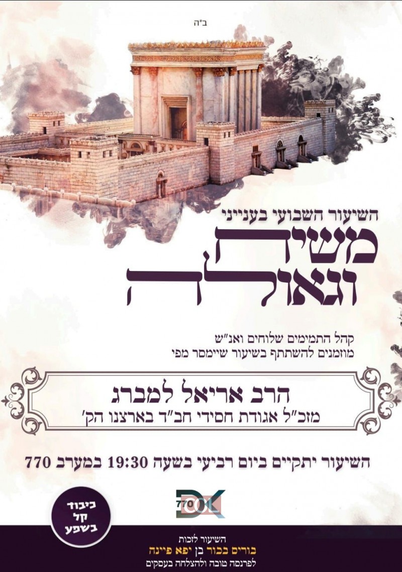 בערב ראש חודש כסלו התכנסו תלמידי התמימים בישיבת 'תומכי תמימים' המרכזית ב-770 לשיעור גאולה ומשיח עיוני ומרכזי • השבוע השתתפו בשיעור אורחים רבים, שלוחים ותמימים שהגיעו מרחבי תבל לרגל ר"ח כסלו ב'חצרות קודשנו' • את השיעור מסר מזכ"ל אגודת חסידי חב״ד בארצנו הקדושה הרב אריאל למברג