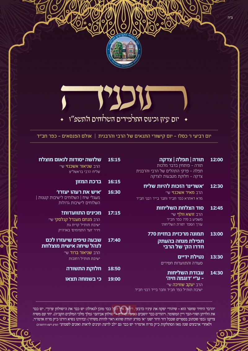 מדובר בכינוס שנתי שאותו עורך 'ועד התמימים', ובמסגרתו מקבלים עשרות התלמידים השלוחים, שלפני פחות מחודש הגיעו לארץ על מנת ללמוד ולפעול בישיבות הקטנות והגדולות החב"דיות בארץ כלים חשובים לעבודתם.