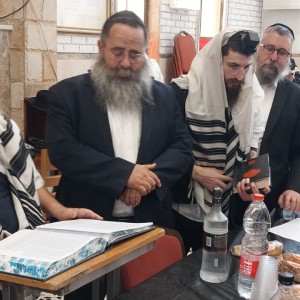 בבית הכנסת 'בית מנחם' בכפר חב"ד ערך הרב נתן ציבין סיום מסכת לע"נ אביו הרב צבי הירש ע"ה, ליום היארצייט