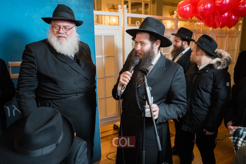 הרב מנחם מענדל קוטלרסקי, יו"ר קרן השלוחים, כיבד את הרב זלמן אהרן גרוסבאום מטורנטו באמירת הפסוקים בהקפה המוקדשת לשלוחים.