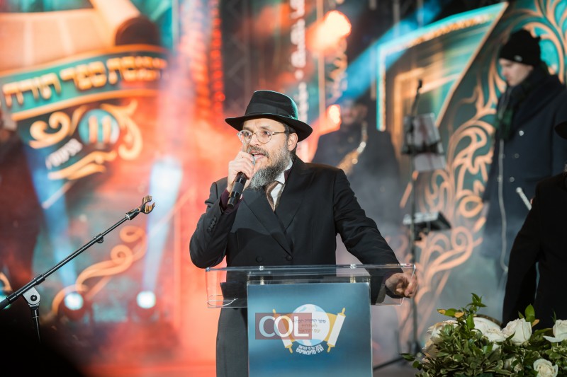 את רגעי השמחה על גבי הבמה הנחה בחן מיוחד הרב שניאור זלמן אוירכמן, שליח בטאלאסי, שהוביל את ההמון בשירה, ריקודים ובהנחיה בשלוש שפות שונות.