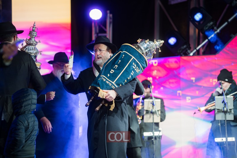 בהמשך נערכו ההקפות בשמחה מיוחדת : הנגיד הרה"ח הר"ר יוסף יצחק מיכאלשווילי, מגדולי התורמים, כובד בהקפה לכבוד הרבי.