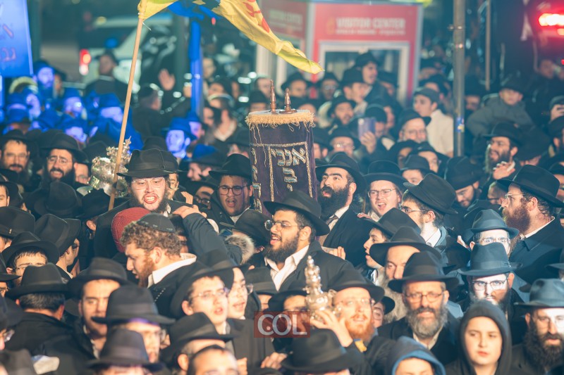 בשיאה של השמחה נערכה הכנסת ספר התורה. ספר התורה שהוקדש לעילוי נשמת הרב משה קוטלרסקי ע"ה נכנס לחדרו הק' של הרבי, ומיד אחריו הוכנס ספר התורה הכללי הי"א לבית הכנסת הגדול של 770 כשהוא נישא בידי הרב משה שמואל אוירכמן, כשאלפים נדחקים לזכות בנשיקה.