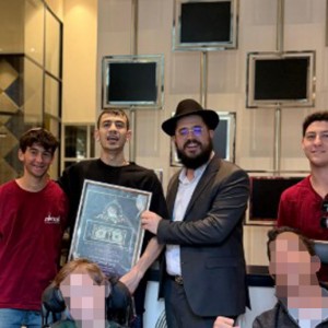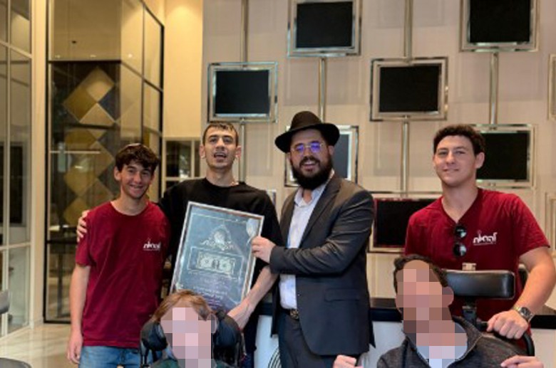 "אני חסיד של הרבי": לאחרי שבא לשמח באירוע ׳להחיות׳ העניקו היום הילדים המיוחדים והרב מענדי לבל מנכ״ל ׳להחיות׳ דולר מידו הק׳ של הרבי לזמר ששון שאולוב ולמפיקו אבי גואטה