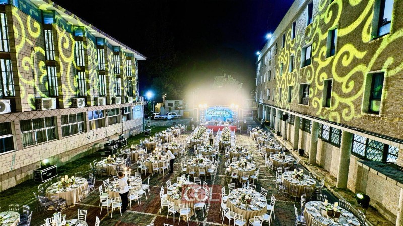 אחד מחדרי הכיתות הלימוד בישיבה הוסב עם שולחנות ערוכים למקום מיוחד עבור נשים המשתתפות באירוע.