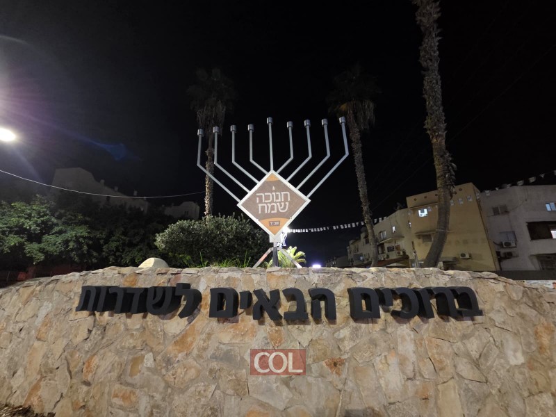 מאירים את העיר: בית חב"ד שדרות בראשות השליח הרב משה-זאב פיזם הקים את החנוכיות המרכזיות בכיכרות העיר לקראת מבצע הפצת האור והנס של חנוכה