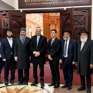 יו״ר הכנסת לווה בידי מנהלי המקום והשלוחים לקהילה הבוכרית הרב זלמן זבולונוב והרב לוי יצחק וולוביק ורבני המרכז הקהילתי הרב ברוך בבייב הרב אשר וקנין והרב דוד שושן ובידי נשיאת המוסדות בארצות הברית הגב' חגית סופייב-לבייב, ור׳ יהושע לבייב בתו ובנו של הנגיד ונשיא קונגרס יהודי בוכרה העולמי ר' לוי לבייב.