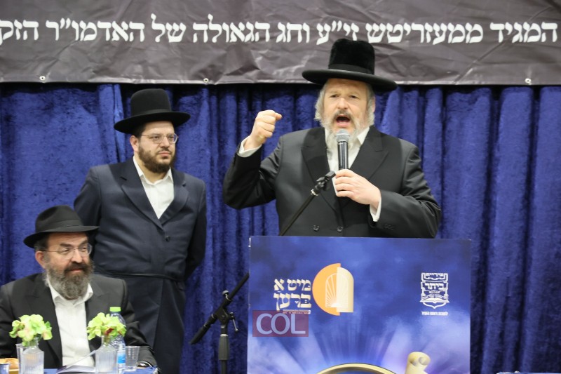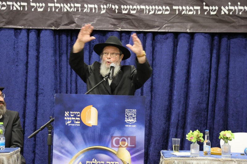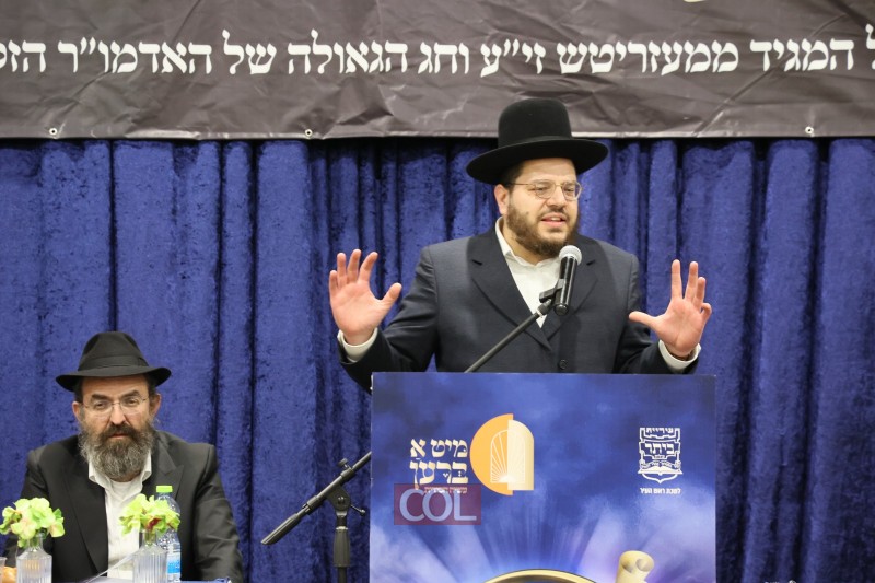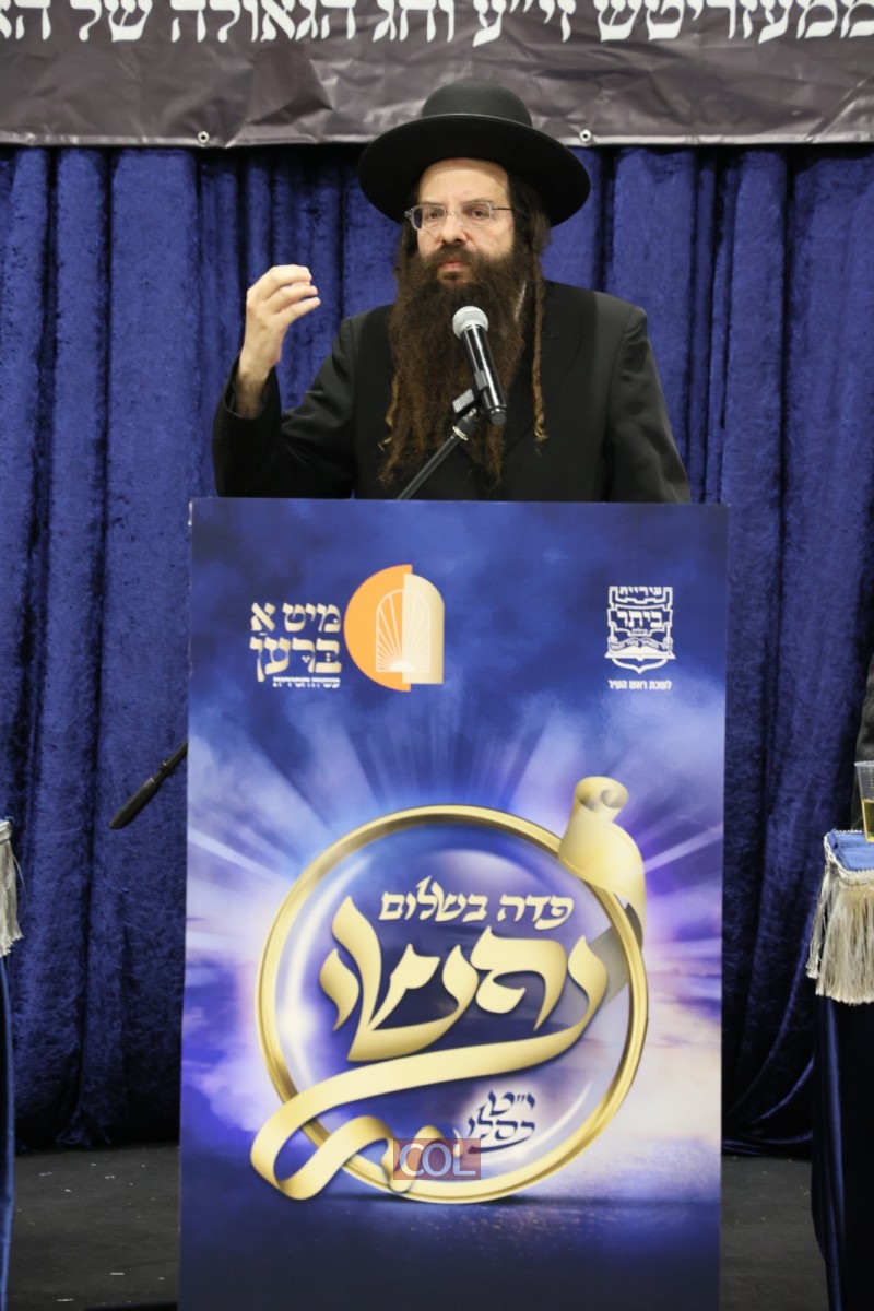 אחרי ניגוני שמחה עם הזמר החסידי ר' ישראל ג'רופי ומקהלת חסידי ויז'ניץ, כובד המשפיע דקהילת חב"ד ברח' המגיד ממעזריטש, הרה"ח ר' דוד אופן שליט"א בחזרה על נקודה ממאמר של הרבי.