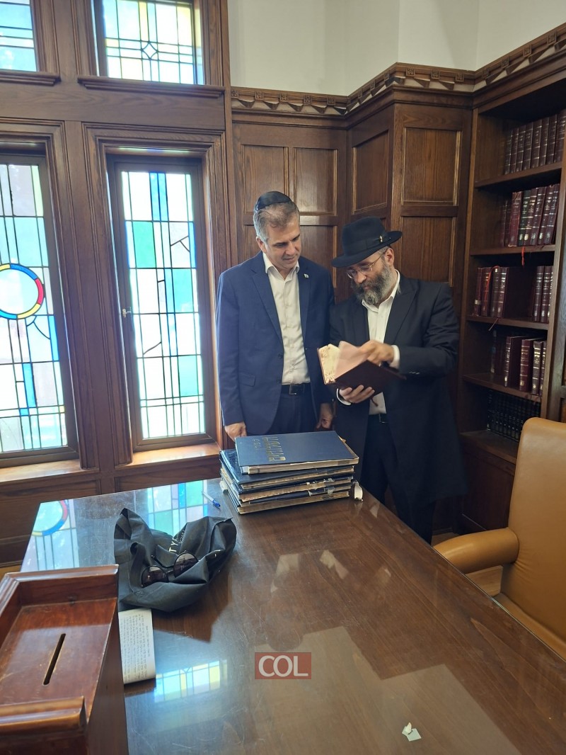 שר האנרגיה והתשתיות מר אלי כהן, הגיע היום, י"ט בכסלו, לביקור בכפר חב"ד ובבית אגו"ח 770, שם התקבל על ידי מנהל הבניין, הרב מנחם לאטר | השר קיבל סקירה מקיפה על הבניין, ביקר בחדר הרבי, כתב פ"נ ונשא תפילה לאחדות עם ישראל | "בתפקידי הקודם כשר החוץ, בכל מקום בעולם פגשתי את שלוחי הרבי שפועלים ללא לאות להפיץ תורה ואור", אמר במהלך הביקור