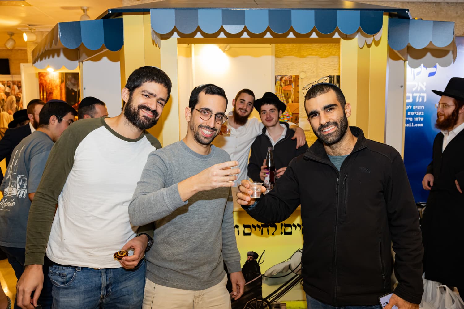 'בגילגול המודרני' של אירועי צמאה להמונים, אך טבעי וחלק מהנוף, לראות עמדת 'משקה' מאויישת, וחלוקה של מגוון סוגים, מיין רגיל ועד 'משקה' אמיתי (וותיקי החסידים יצחקו, כי משקה אמיתי מבחינתם היה רק ה'זעקס און ניינציק' – כוהל מזוקק 96%...) הבקבוקים הריקים שנערמו בעורף הסבירו היטב את מה שהולך פה: 'מחממים מנועים' לקראת ההתוועדות. כוסית קטנה של 'משקה' תעשה רק טוב לנשמה.