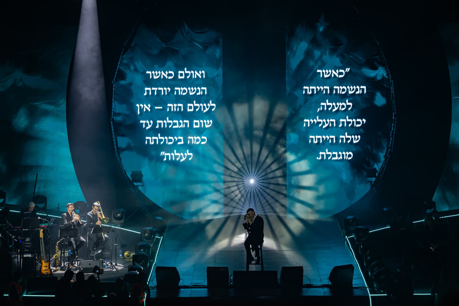 בתחילה, ההתייחסות היא כמו ל'מופע': זמרים שרים, הקהל רוקד ומצטרף, הויזואליה בלייזר על קירות ותקרת האולם. יפה.