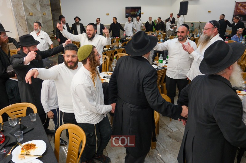 ניגנו המשתתפים ניגוני התעוררות חסידיים סוחפים, וההתוועדות נמשכה אל תוך הלילה. בשיאה של השמחה, פרץ הקהל בריקודי שמחה סוחפים ועוצמתיים, שביטאו את חדוות הניצחון ואור החסידות.