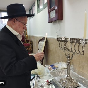 הדלקת נר ראשון של חנוכה בבית הכנסת 'חסדי שי' ע"י המד"א, רב העיר וראש הישיבה, חבר בי"ד רבני חב"ד, הגה"ח הרב משה הבלין. צילום: שניאור מאמו