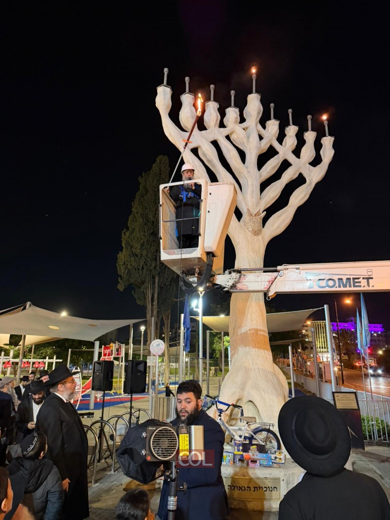לאחר הפיגוע המצמרר באוסטרליה, החליטו בחב"ד רחובות להדליק את החנוכייה הגדולה בישראל וערוץ 14 שידר את האירוע לכל בתי אזרחי ישראל • במעמד השתתפו שלוחי הרבי בעיר ביחד עם רב הקהילה החב"דית וסגן מזכיר בי"ד רבני חב"ד - הרב מנחם מענדל גלוכובסקי