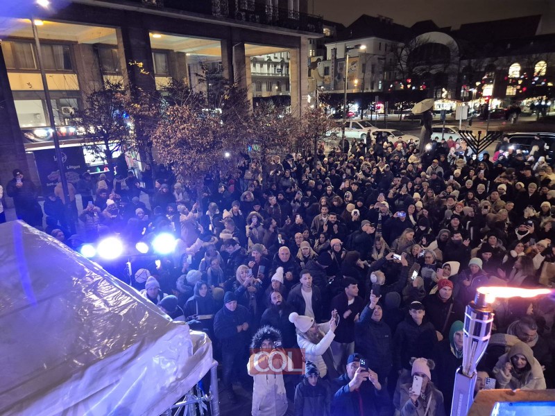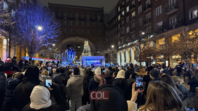 לא מפחדים: מאות ישראלים וחברי הקהילה היהודית בבודפשט בירתה של הונגריה השתתפו הלילה בבהדלקת נר ראשון של חנוכה, באירוע המרכזי של בית חב״ד 'קרן אור' בניהול שליח הרבי ורב הקהילה הישראלית - הרב שמוליק רסקין