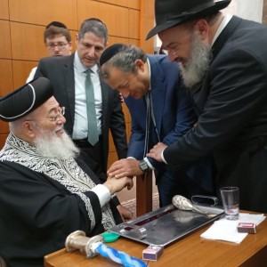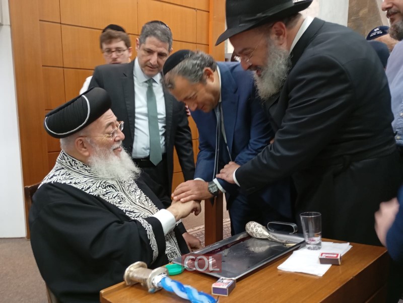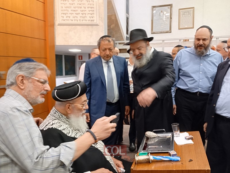 לאחר ההבדלה: הרב דוד אזולאי משלוחי הרבי בסאו פאולו שבברזיל, בברכת 'שבוע טוב' לראשון לציון - הרב שלמה עמאר, שמבקר בימים אלו בברזיל והתארח בקהילת "הר סיני" בשבת-קודש