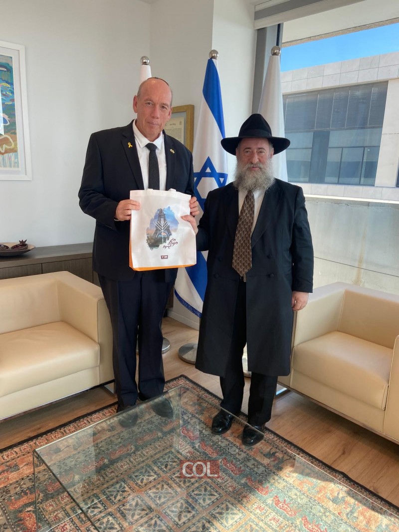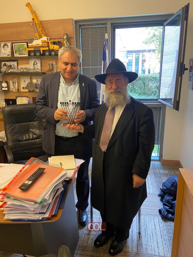 לקראת ימי החנוכה קיבלו שרים ובכירים בכנסת חנוכייה ומסר חב"די אקטואלי מידיו של הרב מנחם מענדל וילהלם, שליח חב"ד בתחבורה, במסגרת מנהגו מידי שנה | שר האנרגיה אלי כהן, מבקר המדינה מתניהו אנגלמן, שר החינוך יואב קיש, שר במשרד האוצר זאב אלקין, שר האוצר בצלאל סמוטריץ, שר הביטחון ישראל כץ