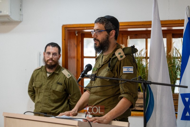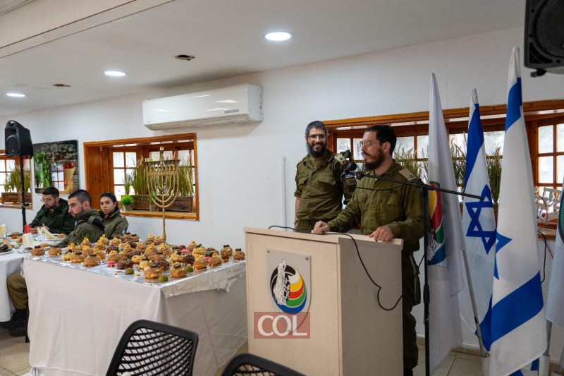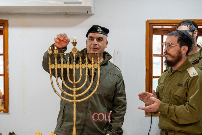 מפקד מרכז ההספקה המטכ"לי תא"ל חוגי נחום וסגן האלוף החב"די ר' מנחם דנה, בהדלקת נרות חנוכה יחד עם מפקדי המרה"ס