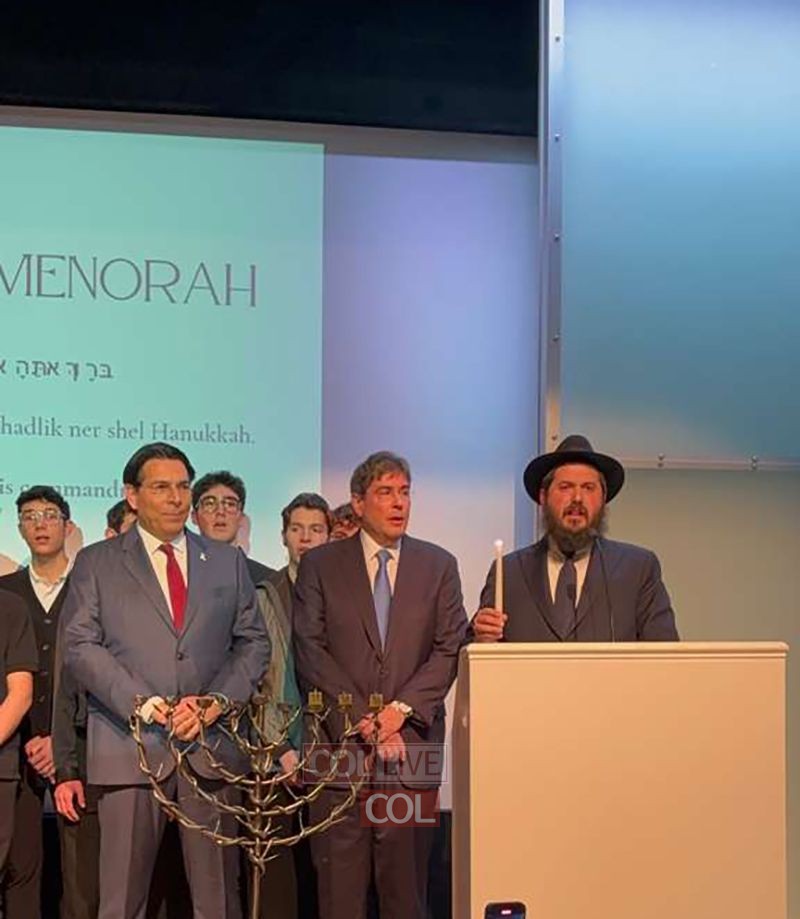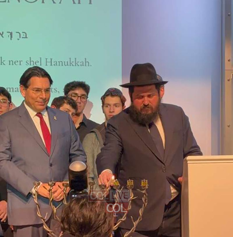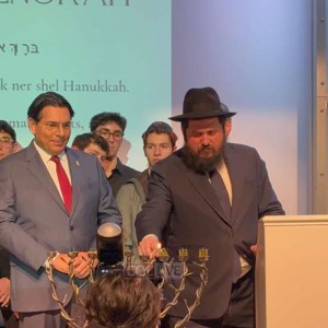 הרב מענדי קוטלרסקי הדליק את החנוכייה יחד עם שגריר ישראל באו"ם דני דנון, בטקס חג חנוכה בניו יורק