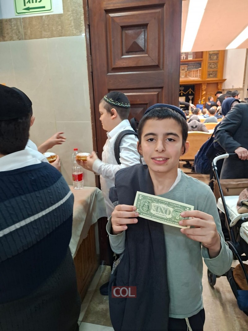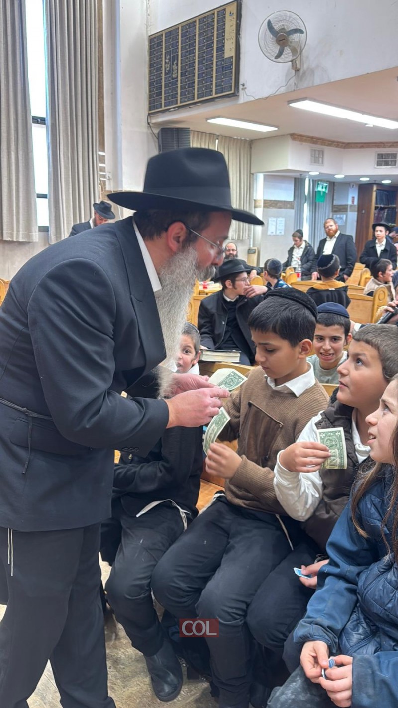 דמי חנוכה חולקו לכל הילדים מידי מנהל החיידר הרב לוי רוזנברג, שדוחף במסירות את התנופה האדירה של החיידר בגשמיות וברוחניות.