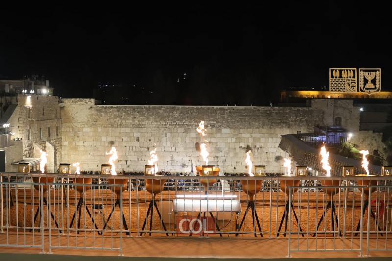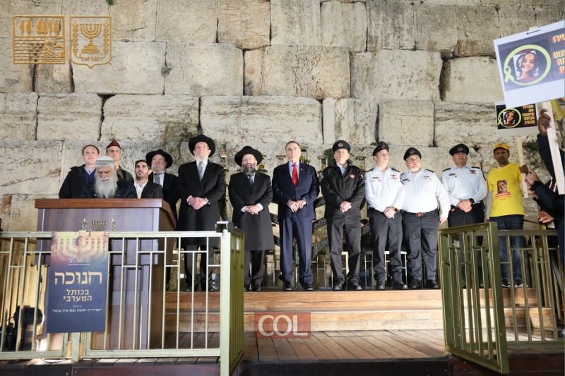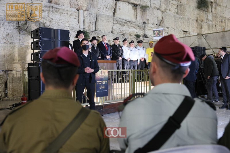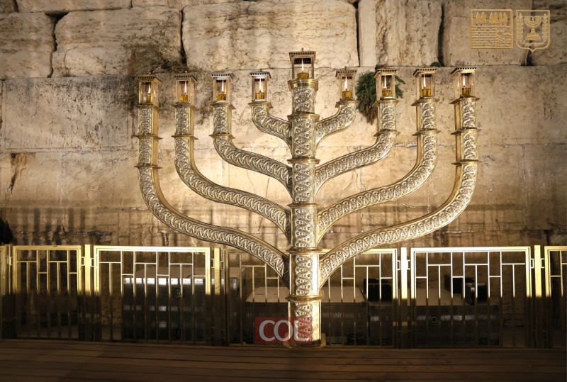 במהלך ימי חג החנוכה למעלה מחצי מיליון איש פקדו את רחבת הכותל, ואמש, נר שמיני של חנוכה הודלק ברחבת הכותל המערבי, בסימן "ניצחון הרוח" (צילום: הקרן למורשת הכותל המערבי)