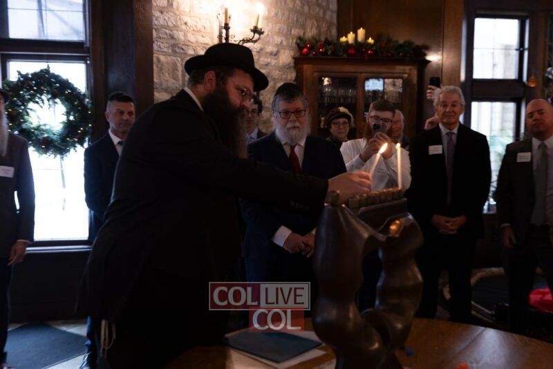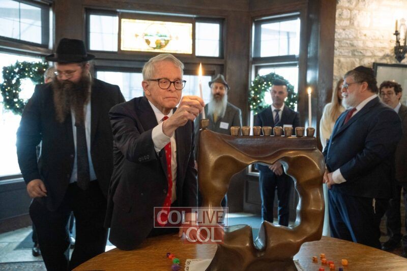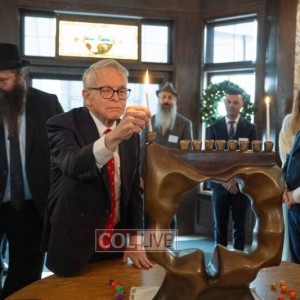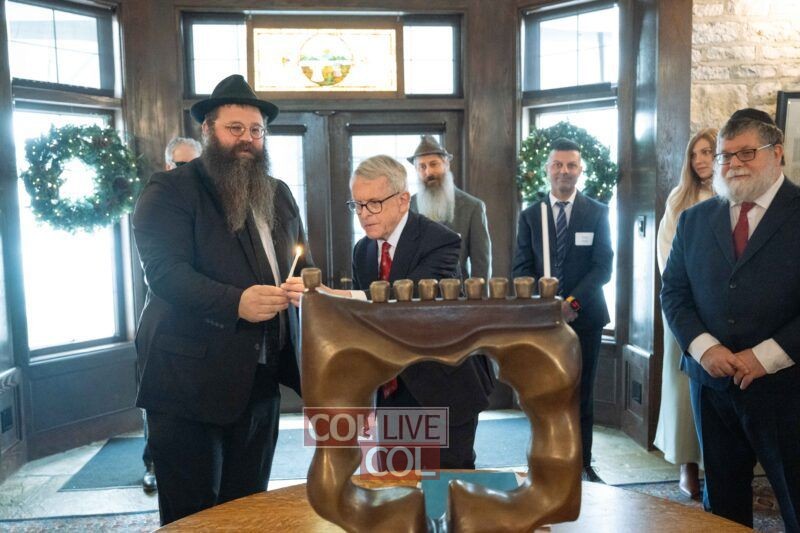 עם חנוכייה מיוחדת מברונז'ה: שלוחי הרבי באוהיו התקבלו בלשכת המושל מייק דה-וויין וכיבדו אותו בהדלקת נר החנוכה. המושל הצהיר כי החנוכייה תעמוד באופן קבוע בלשכתו - כאות הוקרה לרבי ולשלוחיו