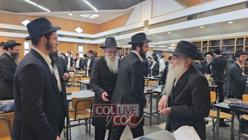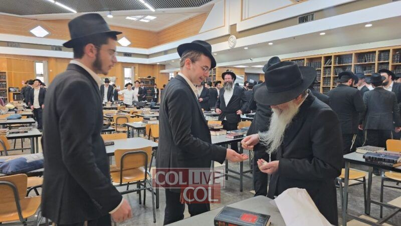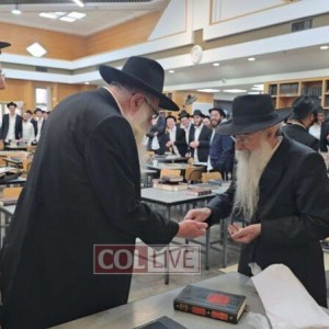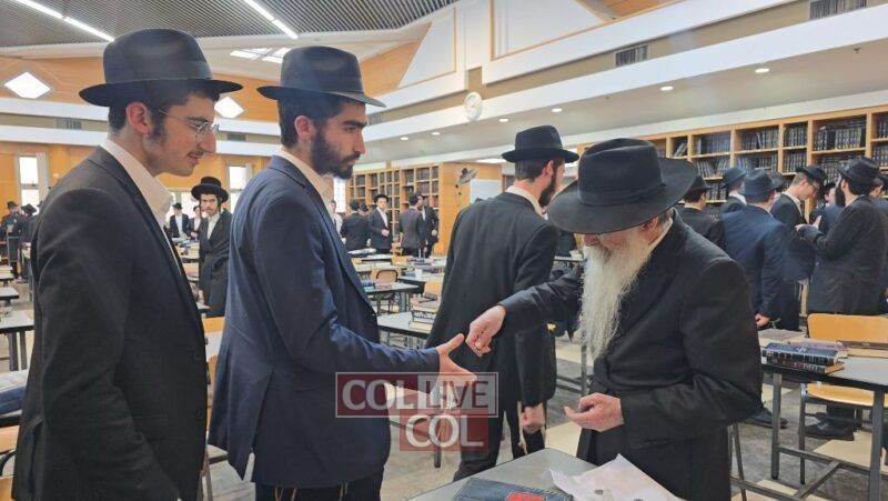 'חנוכה געלט': ראש ישיבת חב"ד במגדל העמק - הרב יצחק גולדברג, העניק 'דמי חנוכה' למשפיע הראשי של הישיבה - הרב יוסף יצחק גורביץ' ולתלמידי הישיבה