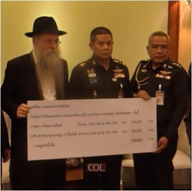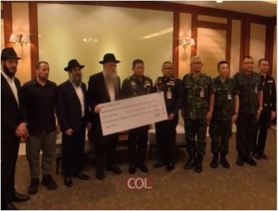 היום הוזמן שליח הרבי בבנגקוק הרב נחמיה וילהלם יחד עם השליח הרב דוד חדד מבנגקוק למטה הראשי המלכותי של תאילנד שם נפגשו עם רמטכ"ל צבא תאילנד וצוות בכירי הצבא, להם העבירו את התרומה באופן רשמי.