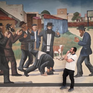 הצייר מוישי קופמן צייר ציור קיר מרהיב בחדר כושר בשכונת קראון הייטס, מבוסס על ציורו המפורסם של הצייר החסידי הרב זלמן קליינמן ע"ה. "שמחה היא המפתח לכל", הוא אומר על הציור | צפו בקליפ מרהיב מרגעי הציור