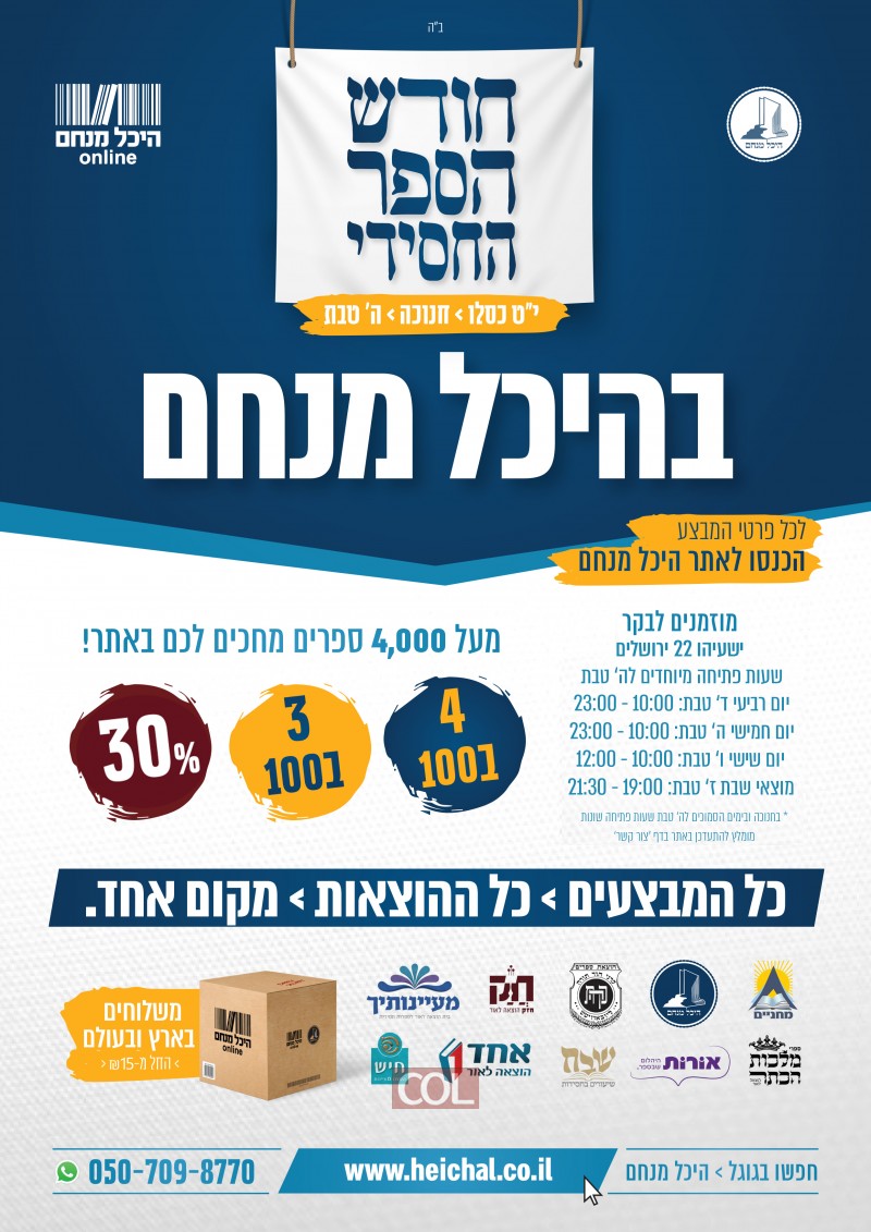 לקניה באתר ומשלוח עד הבית כנסו והזמינו בהיכל מנחם אונליין - www.heichal.co.il