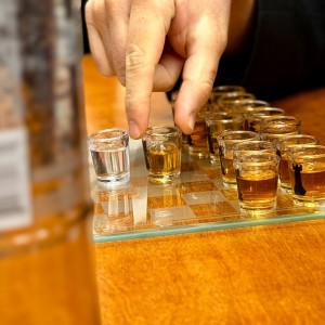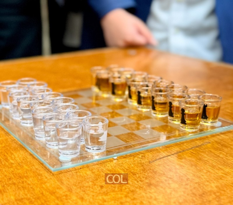 הזאל הגדול ב-770 הפך אמש, ליל ניטל, למתחם של משחק שחמט. אחד הלוחות, בהשראת דידן נצח, הורכב מכוסיות משקה צהוב לבן: כל חייל שנאכל בלוח המפסיד רוקן את הכוסית | הצלם שמואל בצלאל דהן עם גלריה