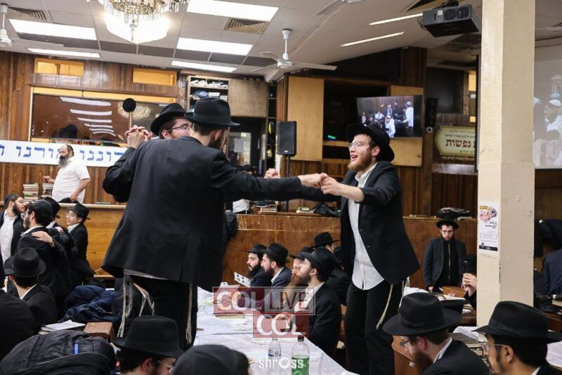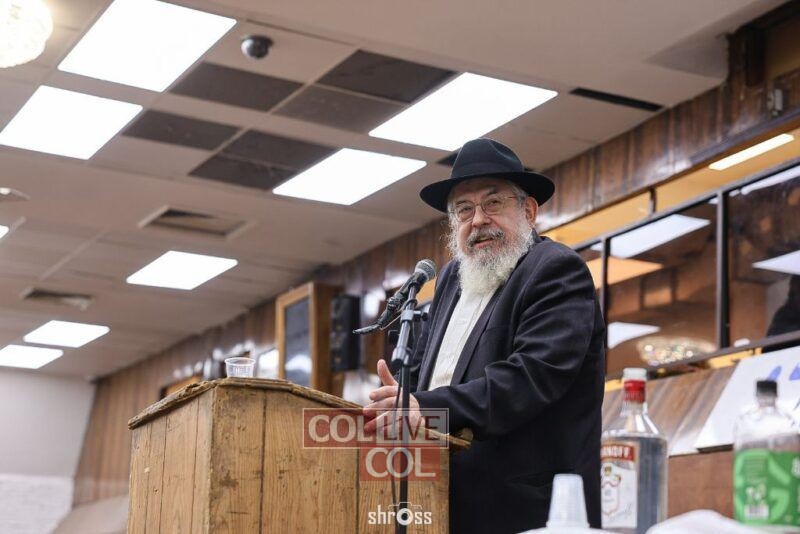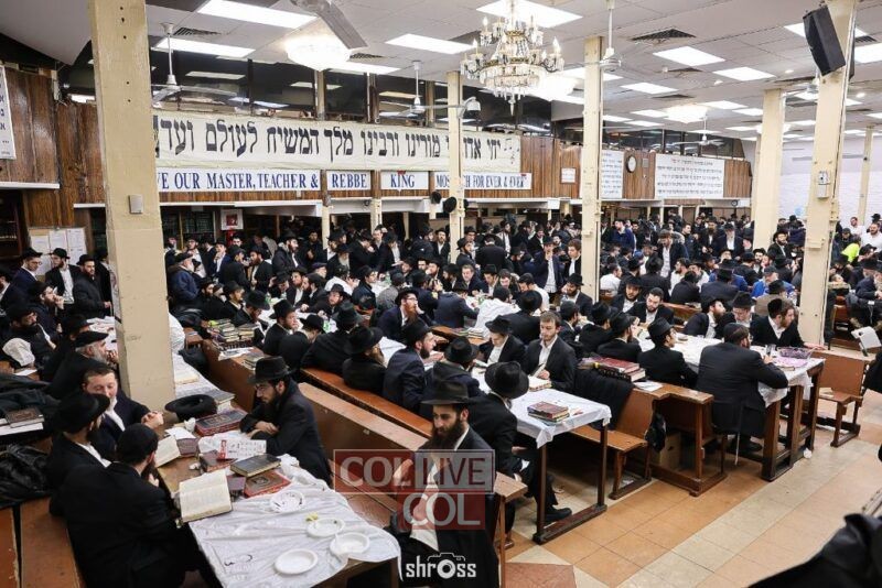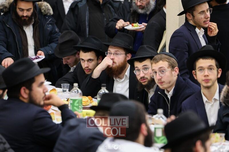 אורחים בהתוועדות המרכזית ה' טבת ב-770: ראש כולל אברכים בכפר חב"ד - הרב שלום דובער לבקובסקי ומשפיע בישיבת תומכי תמימים במגדל העמק ומשלוחי הרבי בעיר - הרב זלמן העכט (צילום: שלום ראס)