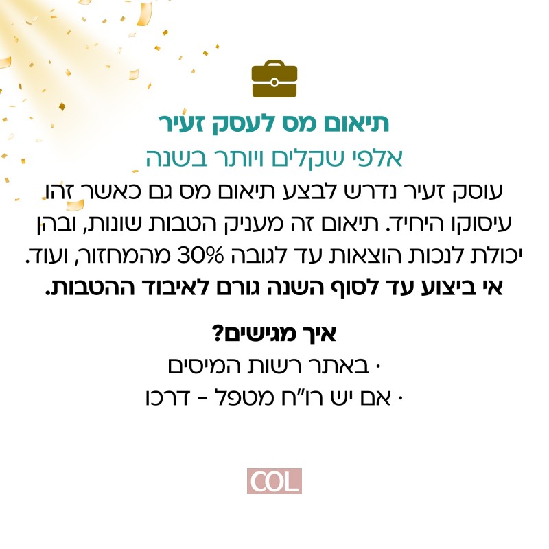 תיאום מס לעסק זעיר - אלפי שקלים ויותר בשנה