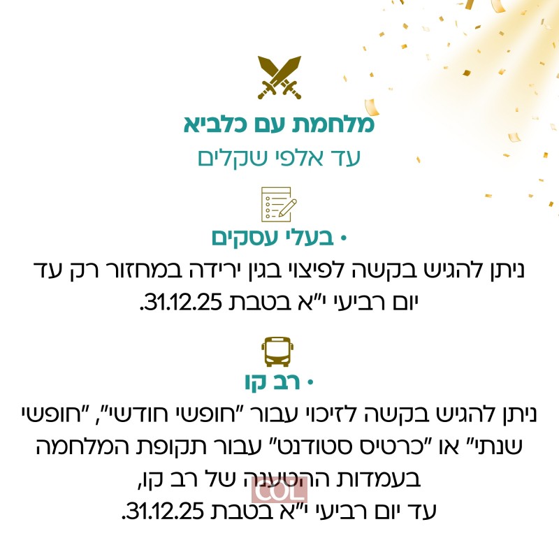 ניתן להגיש בקשה לפיצוי בגין ירידה במחזור רק עד יום רביעי י"א בטבת 31.12.25.