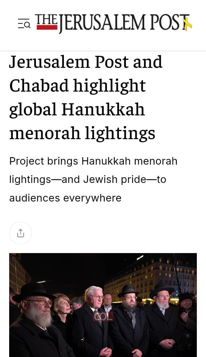 בכתבה שפורסמה בעיתון צוין כי מזה למעלה מארבעים שנה שלוחי חב"ד מקיימים הדלקות ציבוריות ברחבי העולם, המושכות אליהן עשרות אלפים ומיליונים נוספים הצופים אונליין.