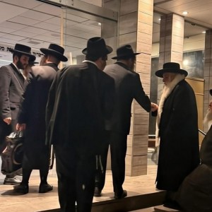 מנהל 'כולל בית מנחם' בכפר חב"ד - הרב משה הורוביץ, מקבל את פני האדמו"ר מתולדות אהרן שליט”א, שהגיע להשתתף באירוע מיוחד של בחורי ישיבות החסידות, שנערך באולם האירועים בכפר חב"ד ב'