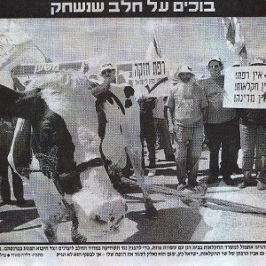 חקלאים חסמו הבוקר (שני) צמתים ברחבי הארץ במחאה על 'רפורמת החלב' של שר האוצר בצלאל סמוטריץ'. ר' שמואל ריבקין שולף תמונה ישנה מעיתון ובה נראה ר' זוסיק ריבקין ע"ה, הרפתן של כפר חב"ד, משתתף בשביתה דומה לפני עשרות שנים