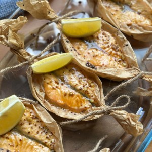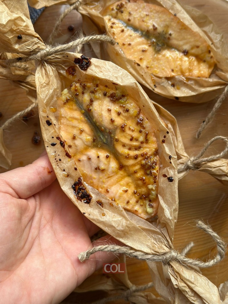 סטייק סלמון עסיסי, עטוף בנייר אפייה ושומר על כל הטעמים והלחות. שיטת הפפיוט יוצרת דג רך ומדויק, כזה שמכינים בקלות אבל מרגיש חגיגי ומוקפד - מושלם לארוחה משפחתית, לשבת או לאירוח| מאת נחמה בן עגו