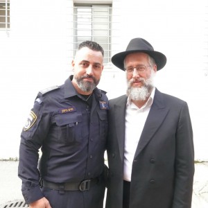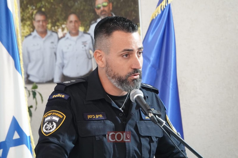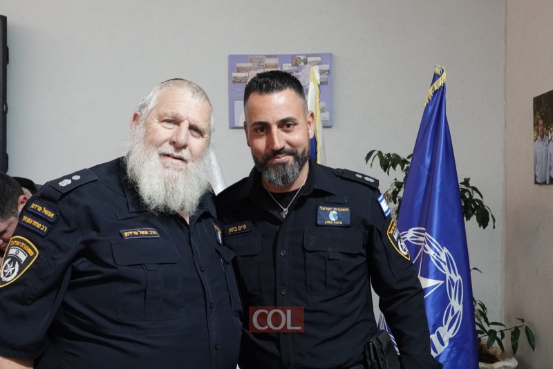 בטקס כניסתו לתפקיד של מפקד תחנת צפת החדש סנ"צ חיים ביטון, השתתף המד"א ורב קהילת חב"ד בעיר הרב מרדכי ביסטריצקי. צילום: מלך גרסטל