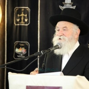 הגה"ח ר' מאיר צבי גרוזמן נושא דברי תורה ב'ירחי כלה' בתות"ל המרכזית (ארכיון COL)